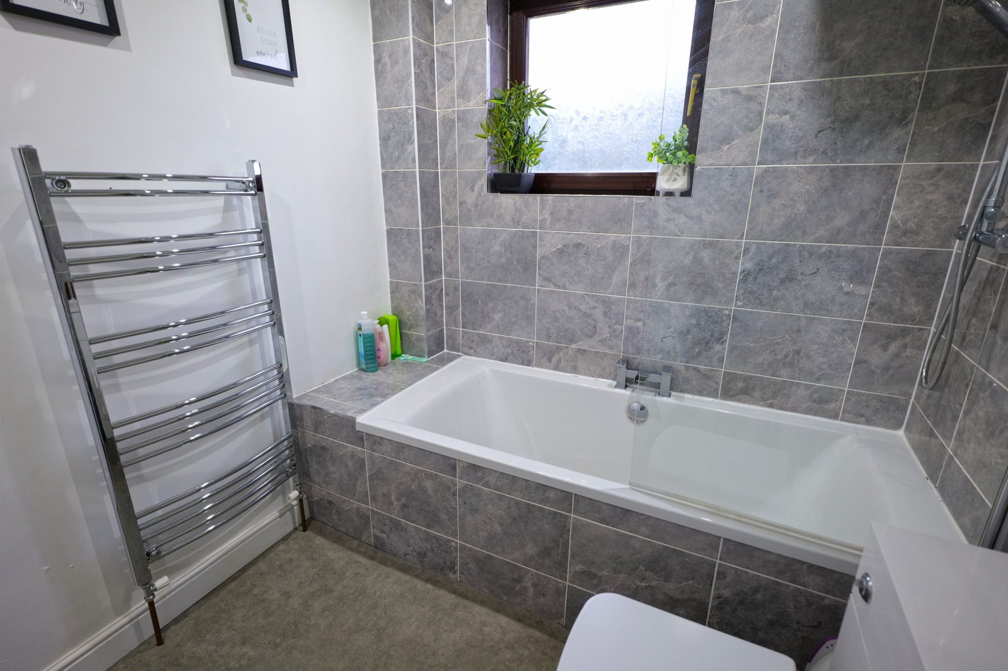 All three bedrooms are well proportioned double rooms, with the principal bedroom benefiting from an attractive en-suite shower room. The main bathroom is beautifully finished and fitted with a modern three piece white suite, with a rainfall style shower over the bath, as well as an additional shower.