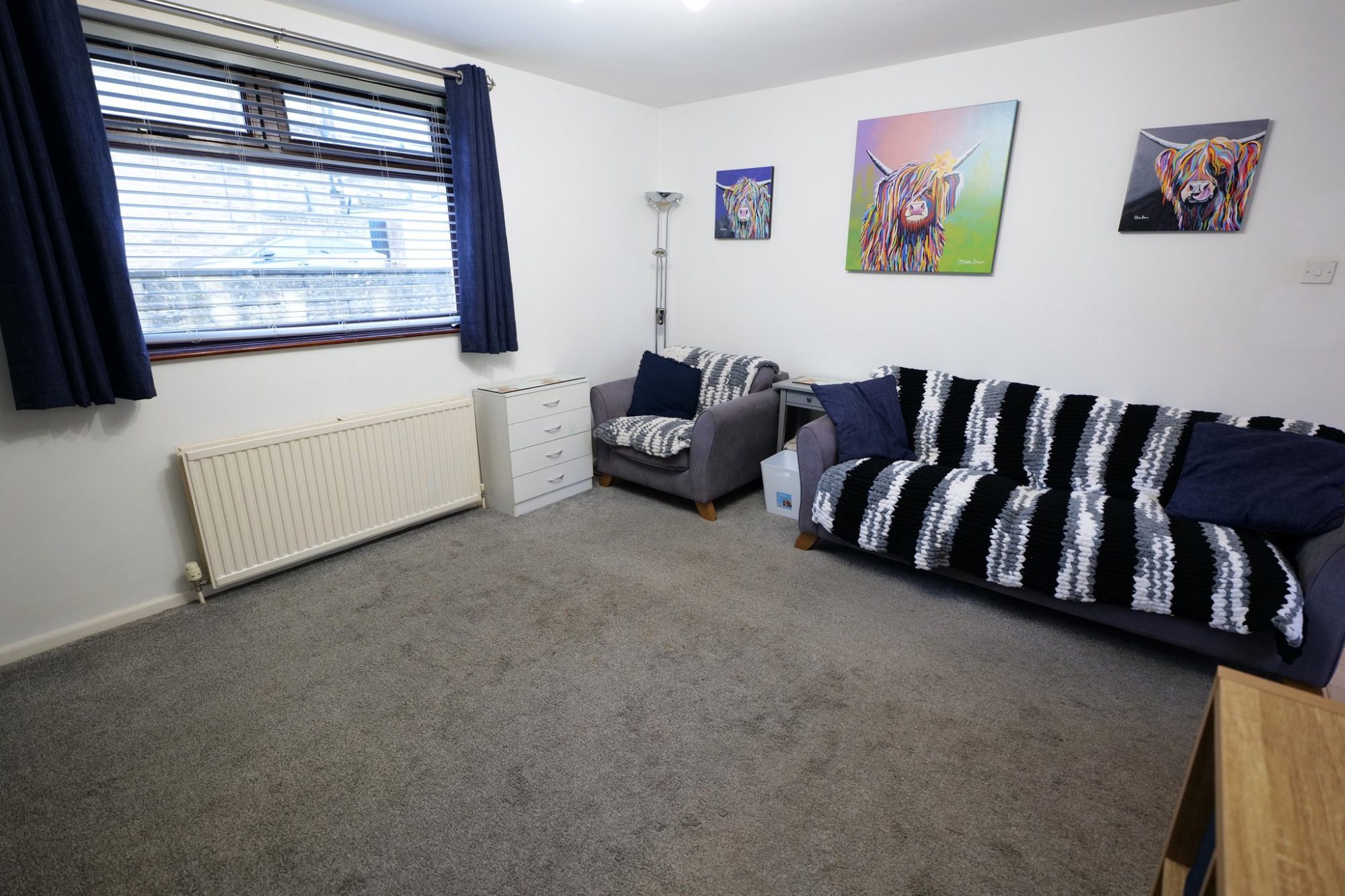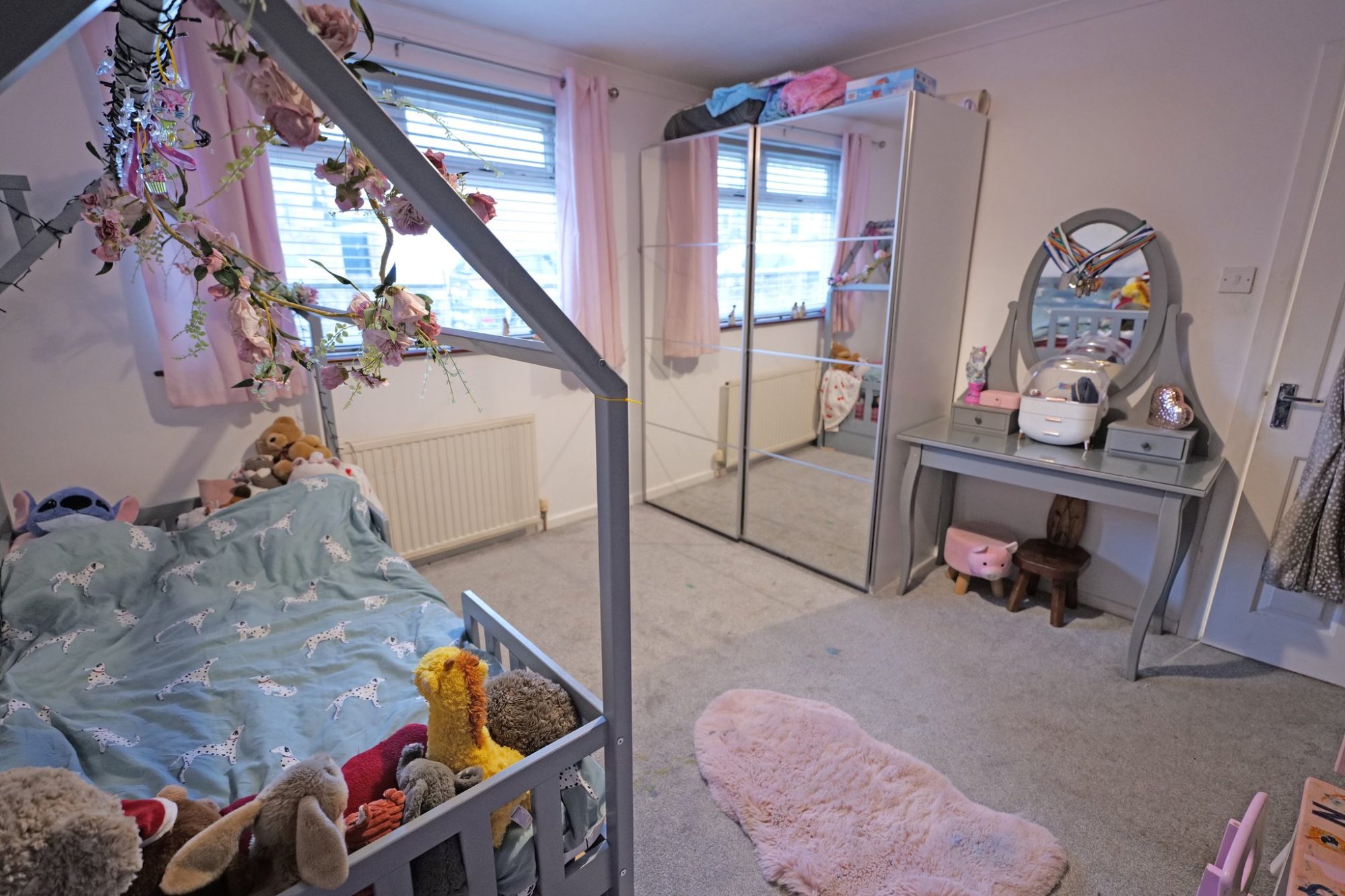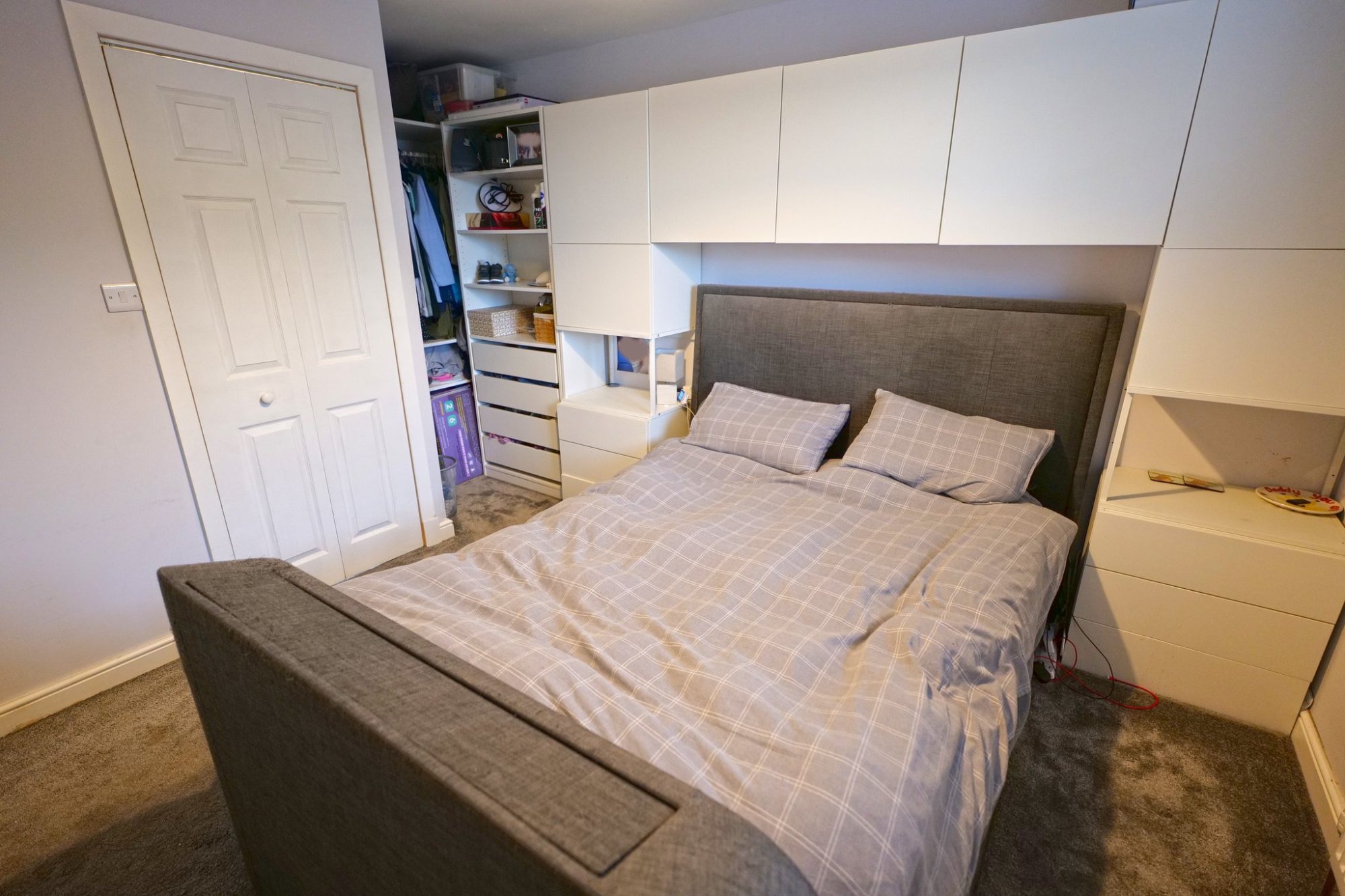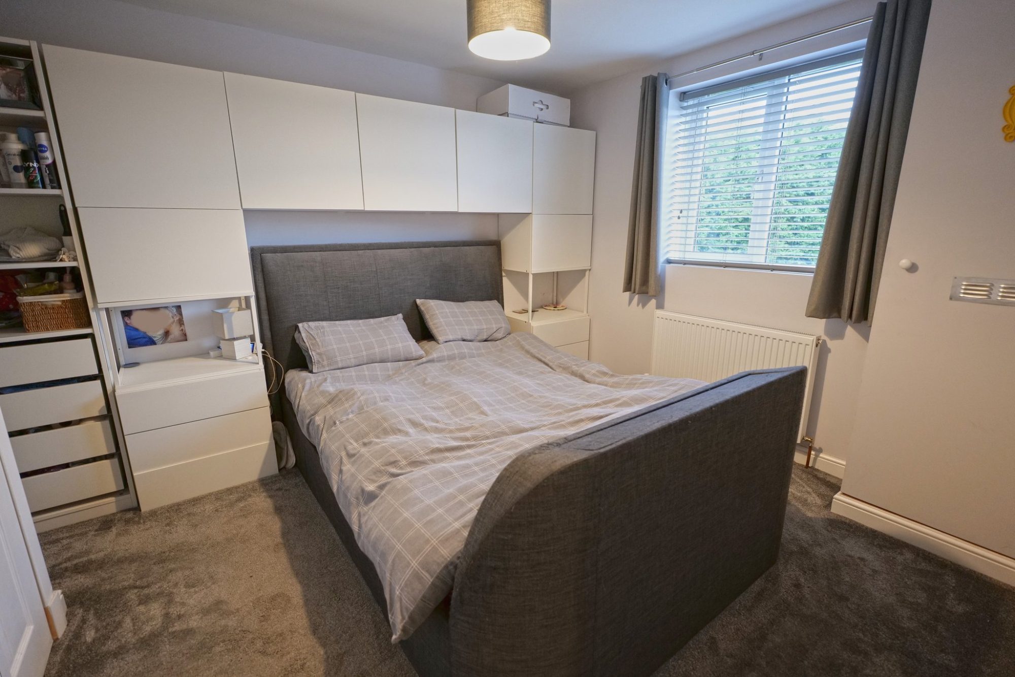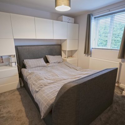 This double room has a pvc double glazed window, a radiator and built-in cupboard which houses the Worcester gas condensing combination boiler.