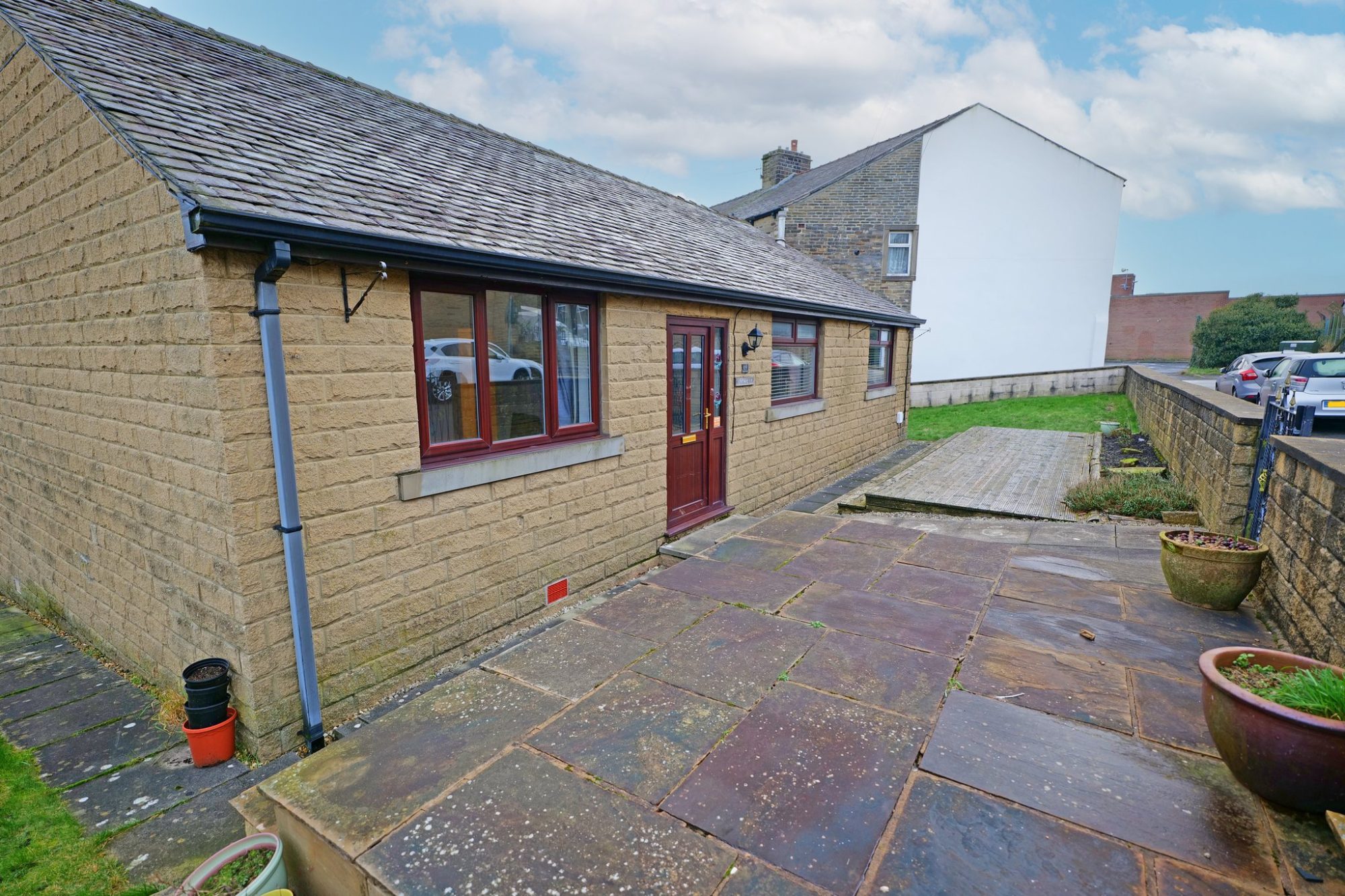 Proceed from our office on Church Street into Station Road. At the crossroads, turn right into Fernlea Avenue and continue on to the traffic lights. Turn left immediately through the lights into Rainhall Road, continue down and take the fourth left turning into Bank Street and continue towards to end of the street, the Bungalow is located on the left hand side.