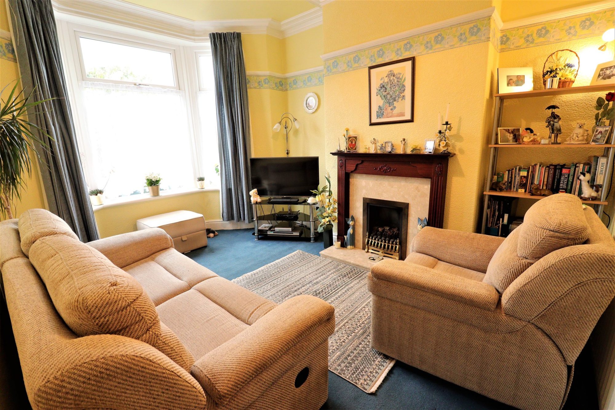 This pleasant room has a large pvc double glazed bay window, and stained wood fireplace with a marble inset and hearth and fitted with a living flame gas fire. Radiator, picture rail, coved ceiling and television aerial point.