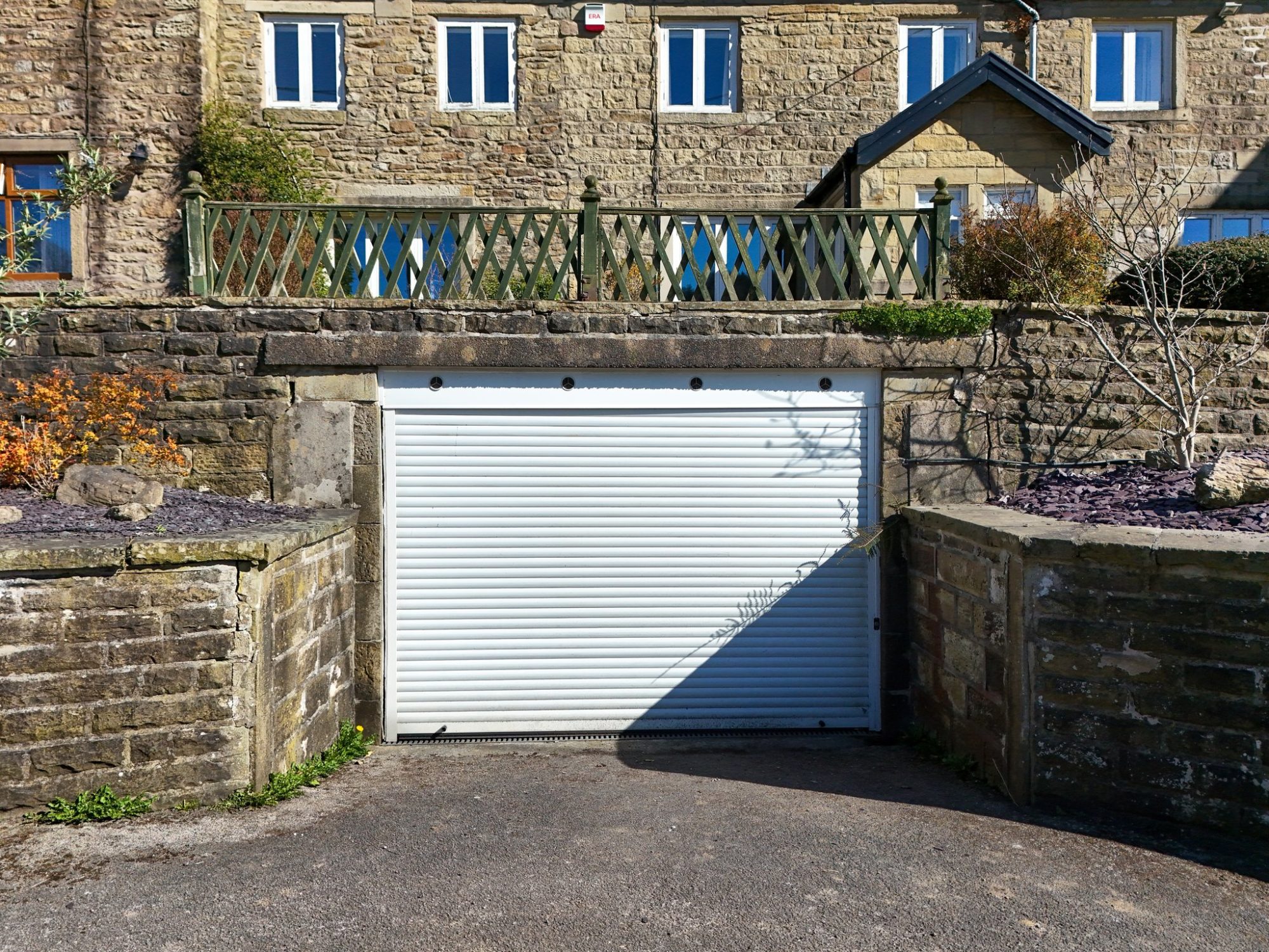 Built under the forecourt area, the garage has restricted headroom and can only accommodate a small car, or motorbikes and bicycles and has a remote controlled, electric roller door and electric power and light.