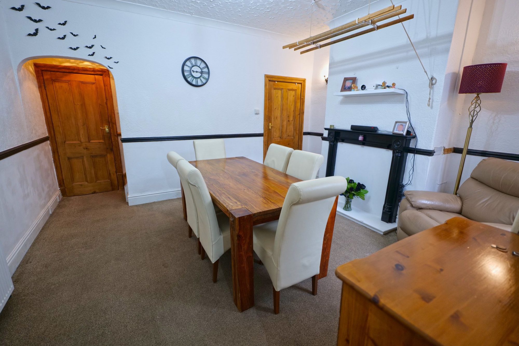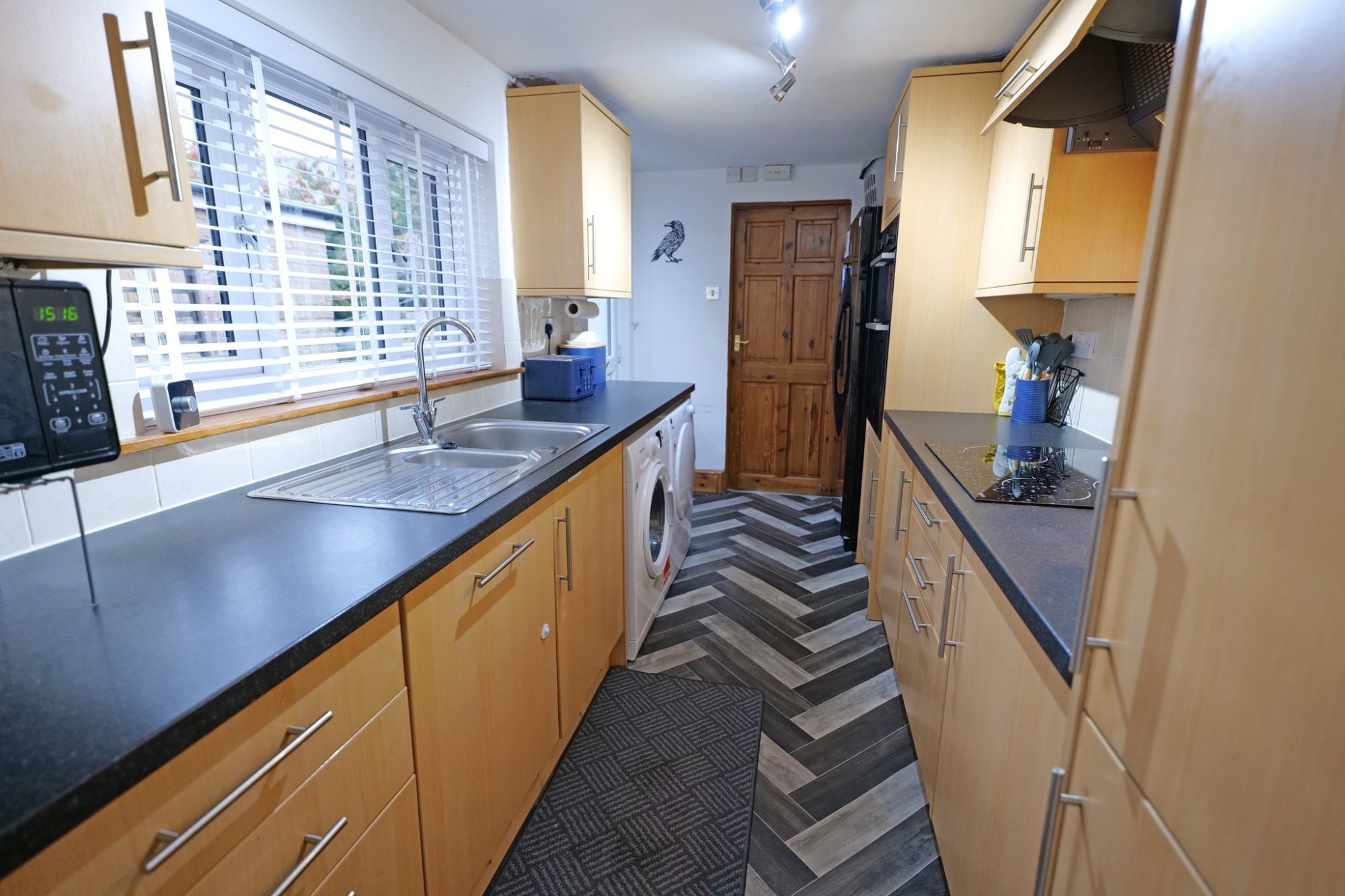 Benefiting from pvc double glazing and gas central heating, run by a condensing combination boiler which was newly installed in 2025, the accommodation briefly comprises a sitting room, with a fireplace (currently housing a living flame gas fire, not in working order) and a good sized living/dining room. The extended kitchen is fitted with light wood finish units incorporating a built-in electric double oven/grill and an electric hob with an extractor hood over and integral dishwasher. A door from the kitchen gives access to the ground floor bathroom, which is fitted with a modern three piece white suite, including a rainfall style shower plus an additional shower head.