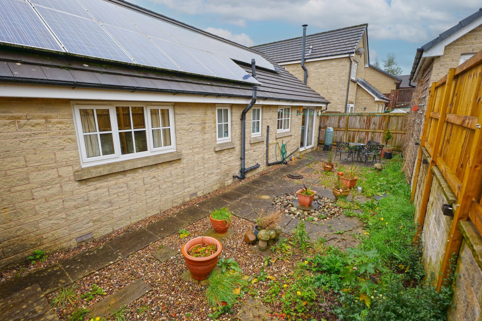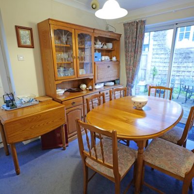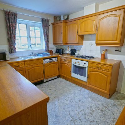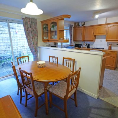 Complemented by pvc double glazing, gas central heating, run by a condensing combination boiler which was newly installed in 2024, and having the benefit of solar panels, the accommodation briefly comprises an entrance hall with two built-in storage cupboards and an impressive lounge, which has a fireplace fitted with a living flame gas fire. The large dining kitchen partially separates the kitchen from the dining area, which has patio doors leading out to the rear garden. The kitchen is fitted with wood fronted units and appliances, incorporating a built-in electric oven and a gas hob (both currently not in working order) with an extractor hood over, and integral fridge, freezer and dishwasher.