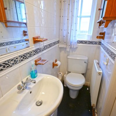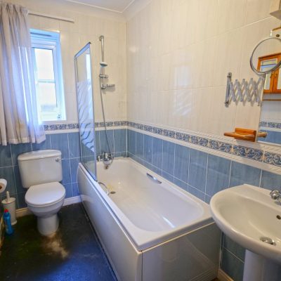 There are three good sized bedrooms, two with built-in wardrobes, and the principle bedroom having an en-suite shower room. The other bedrooms are served by the house bathroom, which has a three piece white suite with a shower over the bath.