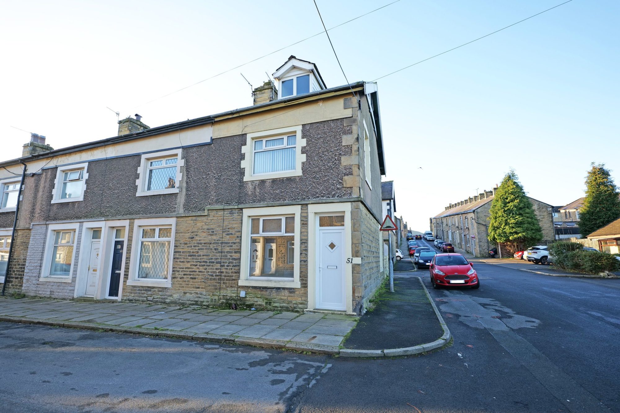 From our office on Church Street, proceed into Skipton Road. Go past the Holy Trinity Church set up on the left, turn left at the ‘T’ junction and go straight ahead at the mini roundabout into Gisburn Road. After the first parade of shops on the left, turn right immediately before St Joseph’s Church into Gisburn Street, then turn third left off Gisburn Street into Colin Street, travel to the end of the street and the house is the end of the terrace.