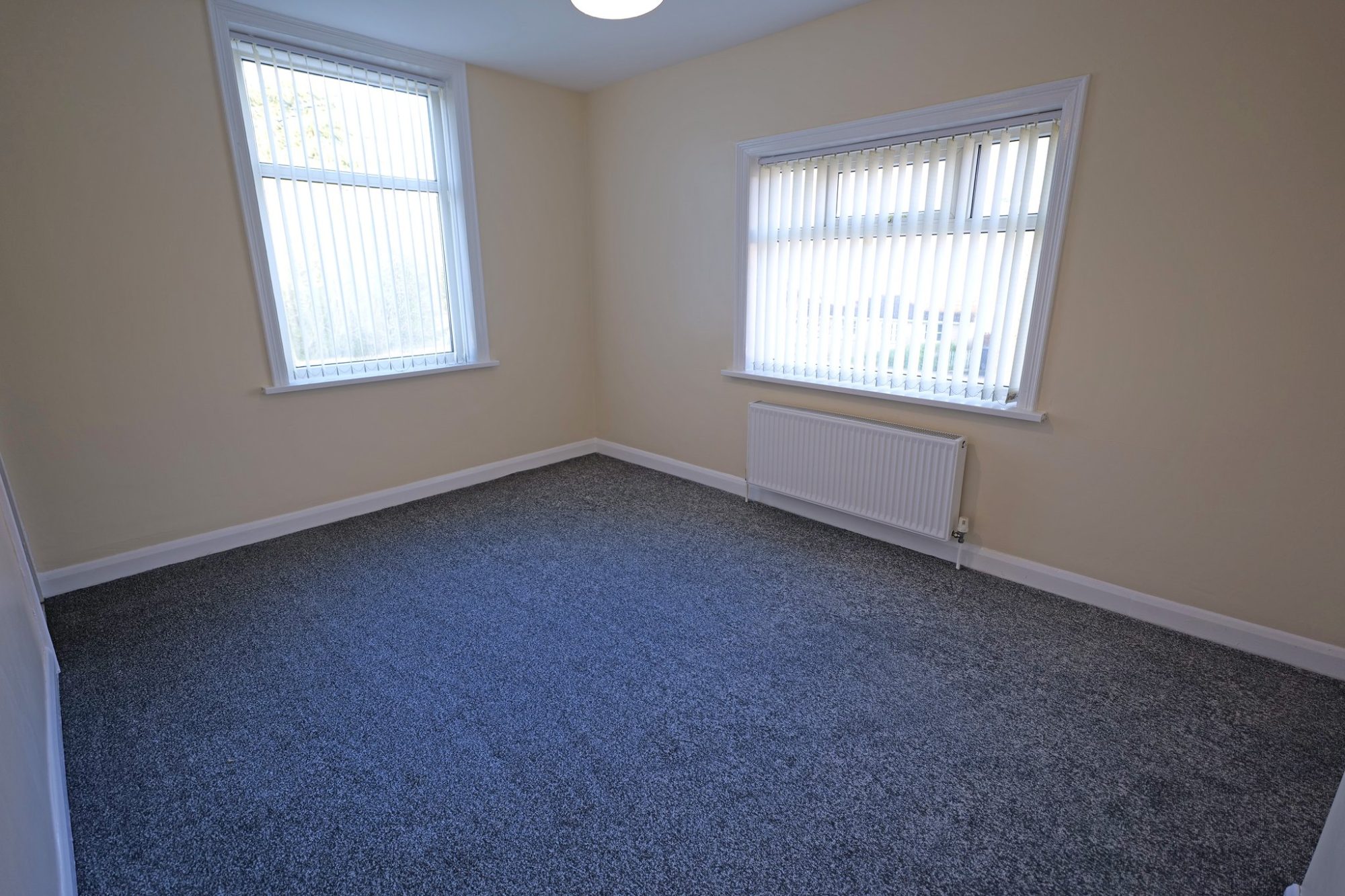 This double room has two pvc double glazed windows, a radiator and an understairs storage area.