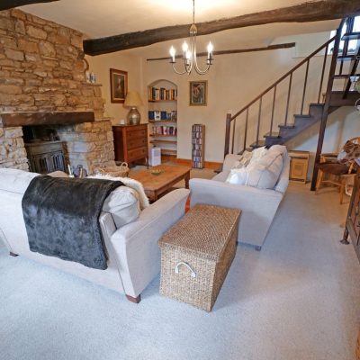 Benefitting from ‘oak’ finish pvc double glazing and central heating, run by a gas condensing combination boiler, this quaint, ‘chocolate-box’ cottage briefly comprises a spacious, attractively furbished, light and airy dining kitchen, fitted with white units, wood finish laminate worktops, a Belfast style sink and a built-in electric oven and hob, and a large, impressive and extremely inviting lounge, boasting a splendid stone fireplace, fitted with a log burning stove, and also featuring an open return staircase and a pvc double glazed French door, opening onto the charming garden.