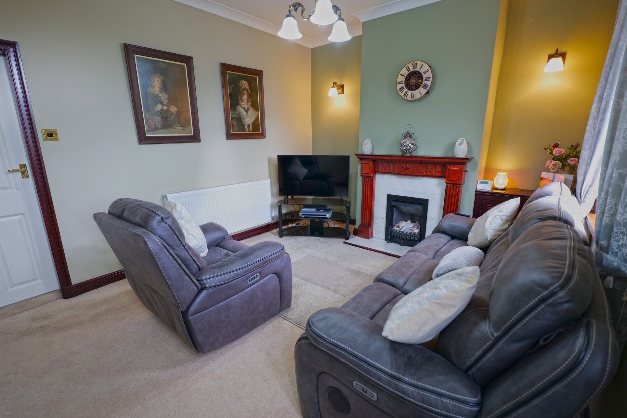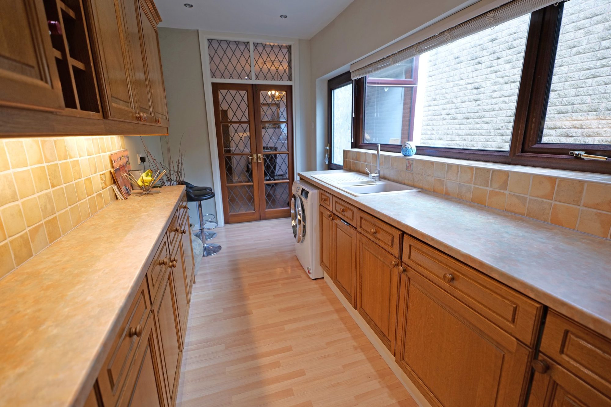 Inside, the property is complemented by pvc double glazing and gas central heating. The ground floor features a tastefully decorated sitting room with a stained wood fireplace and living flame gas fire, alongside a spacious living/dining room with a rustic fireplace housing a gas fire. The extended kitchen is well appointed with solid wood units and includes a built-in electric oven, a gas hob, integral fridge, freezer and dishwasher.