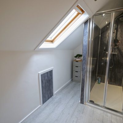 The second floor hosts a fabulous attic bedroom, with a built-in wardrobe, and a stylish en-suite shower room fitted with a contemporary three piece white suite. Please note: The addition of the en-suite to the attic does not have Building Regulation Approval from Pendle Borough Council.