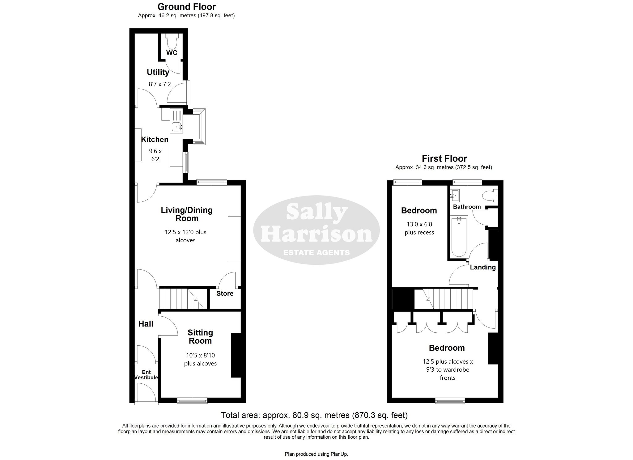 12' 5" x 12' 0" plus alcoves (3.78m x 3.66m plus alcoves)