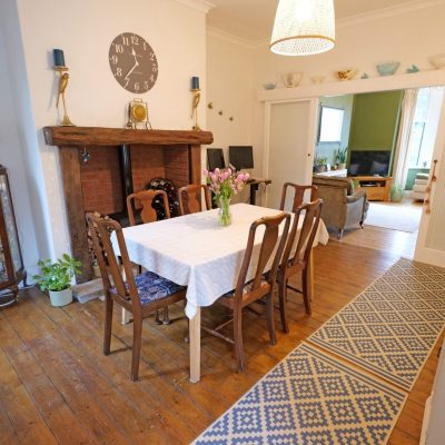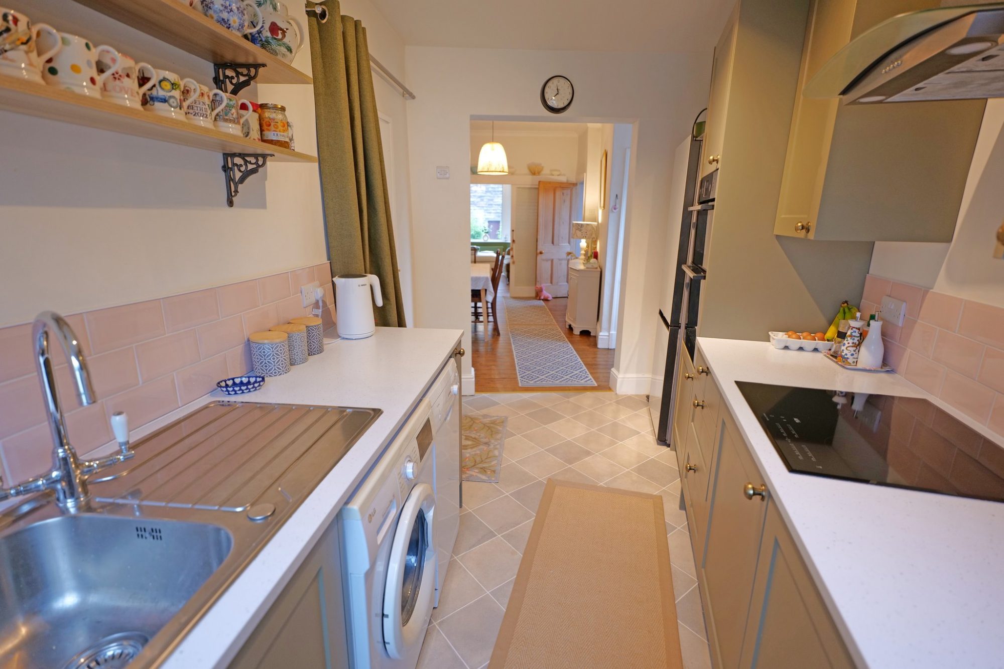 Modernised in recent years by the current owner, this wonderful dwelling benefits from pvc double glazing and gas central heating. The generously proportioned accommodation comprises an entrance vestibule and hall, with useful built-in shelved storage cupboards and a spacious, light and airy lounge with stained wood flooring and double doors opening into the living/dining room. This good sized second reception room features a splendid rustic fireplace fitted with a gas stove. The kitchen has been stylishly re-fitted with modern shaker style units incorporating an electric double oven/grill, induction hob with extractor over and a microwave.