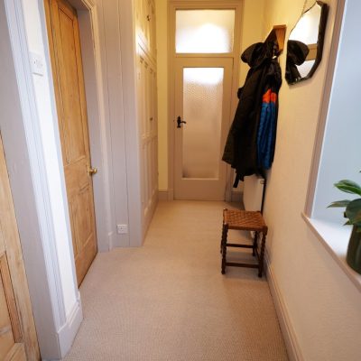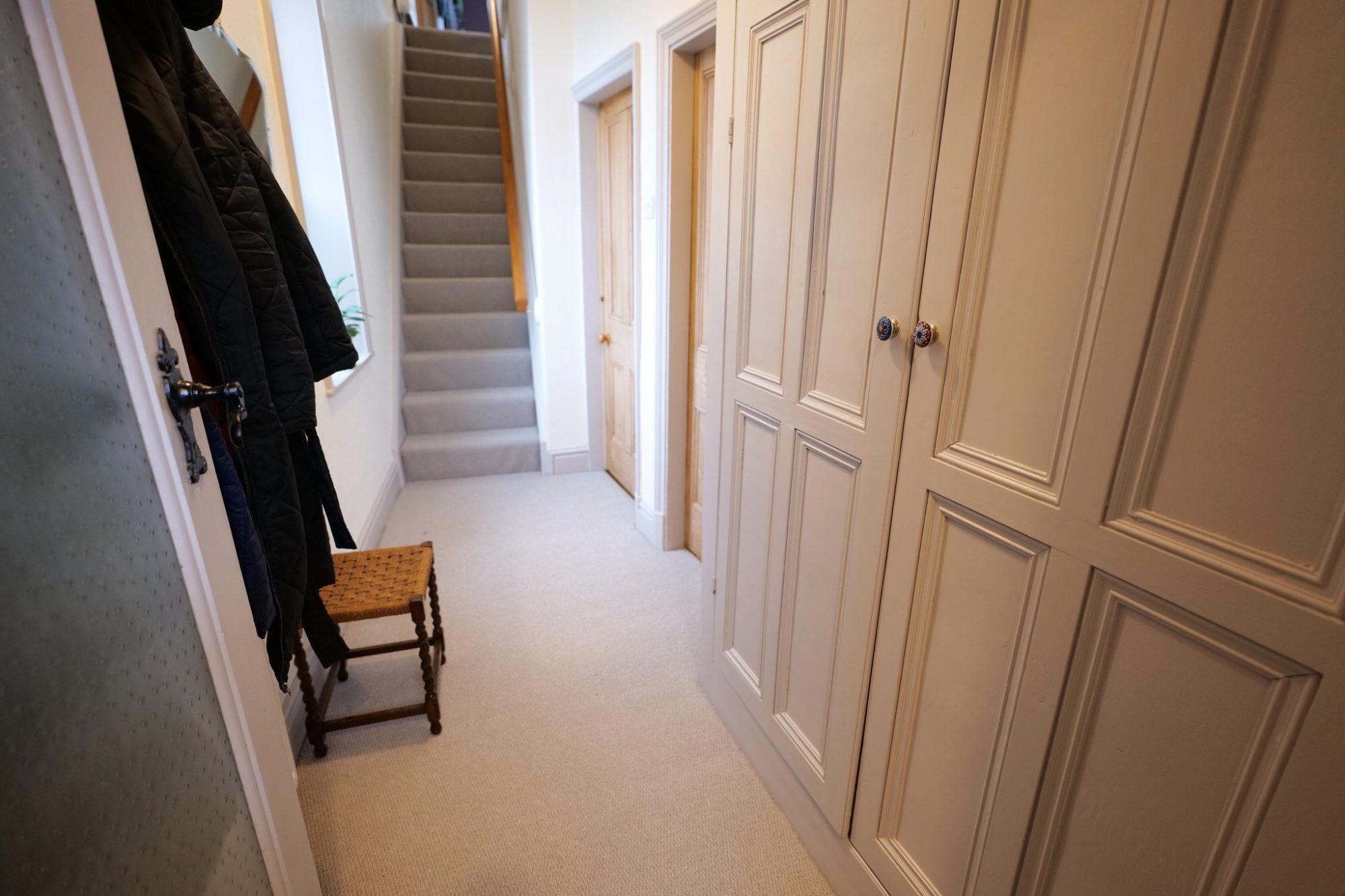 Stairs to the first floor, radiator, pvc double glazed window and built-in cloaks cupboard with overhead storage cupboard.