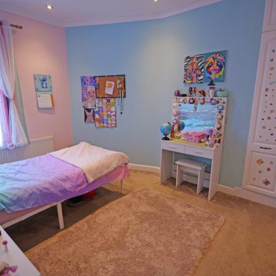 A good sized second double room, with a built-in wardrobe, a radiator and pvc double glazed window and downlights recessed into the ceiling.