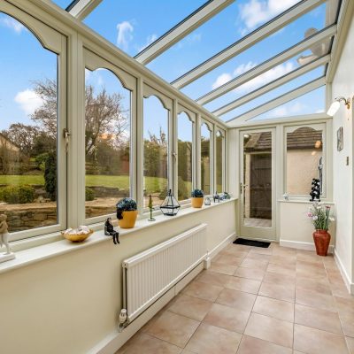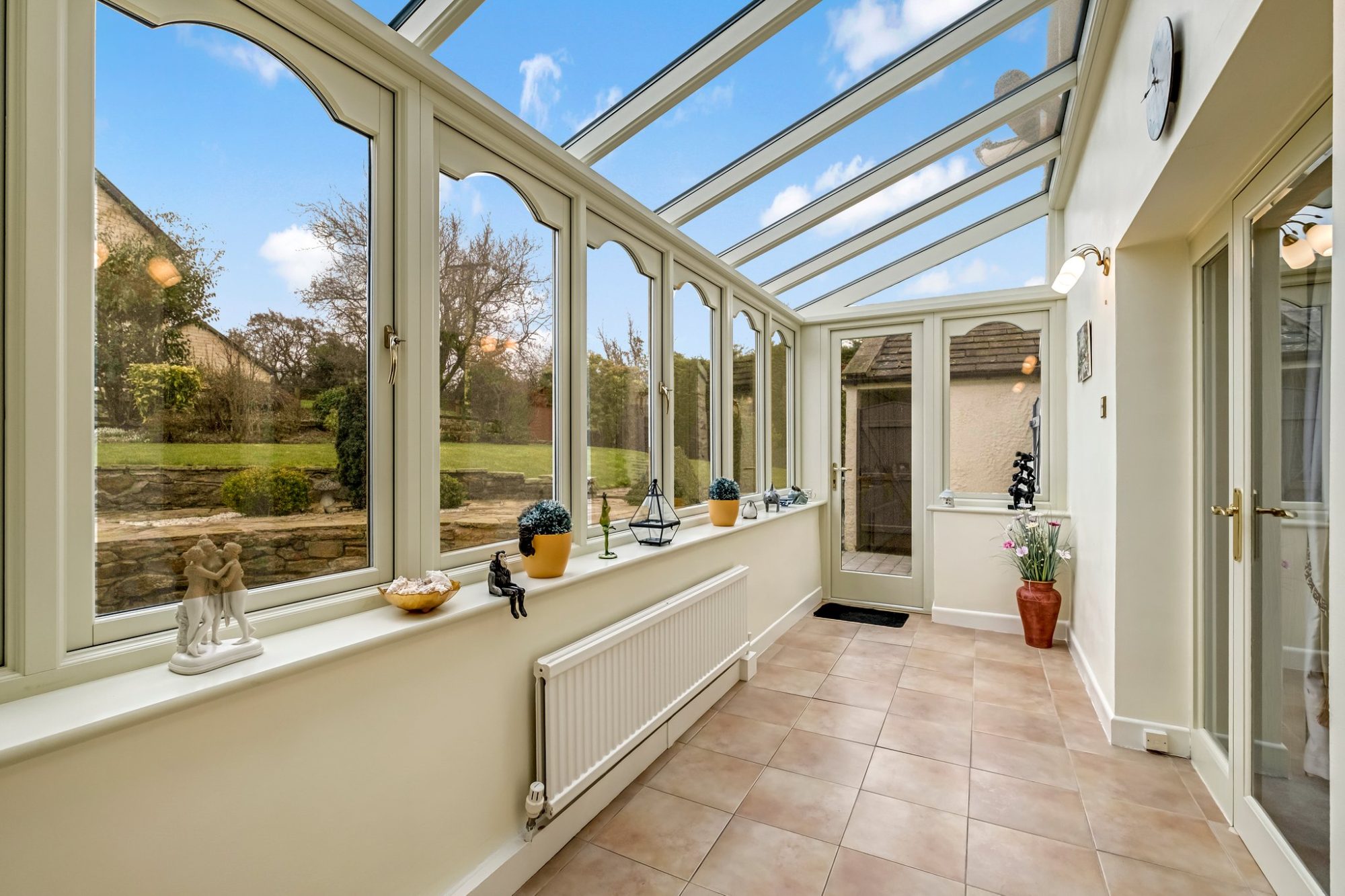 A beneficial addition, the delightful garden room has double glazed windows overlooking the rear garden. Double glazed roof windows and double glazed French doors. Tiled floor, radiator and wall light points.