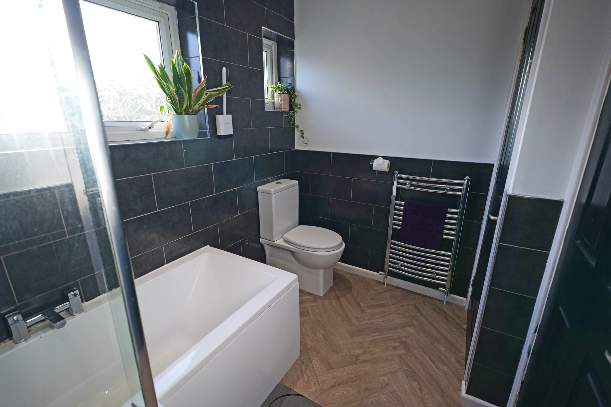 To the first floor are three well sized bedrooms, including two good double rooms. The bathroom is half tiled and fitted with a modern three piece white suite, with a rainfall style shower over the bath, together with an additional separate shower.