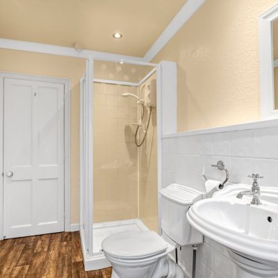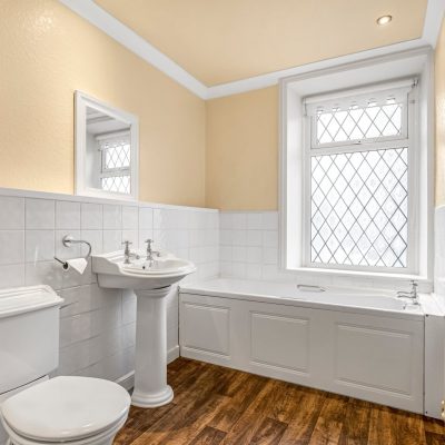 To the first floor the landing provides access to two double bedrooms, both generous in size, along with a four-piece bathroom complete with a separate shower cubicle.