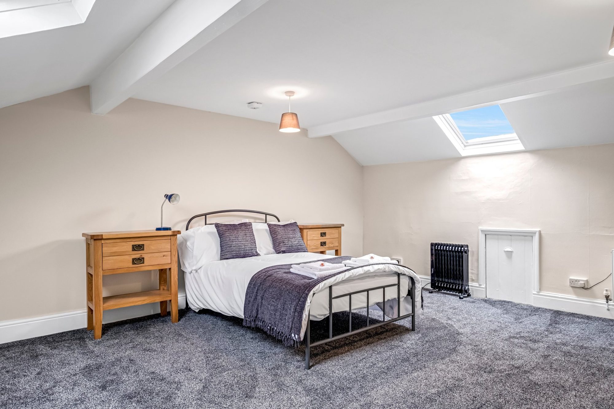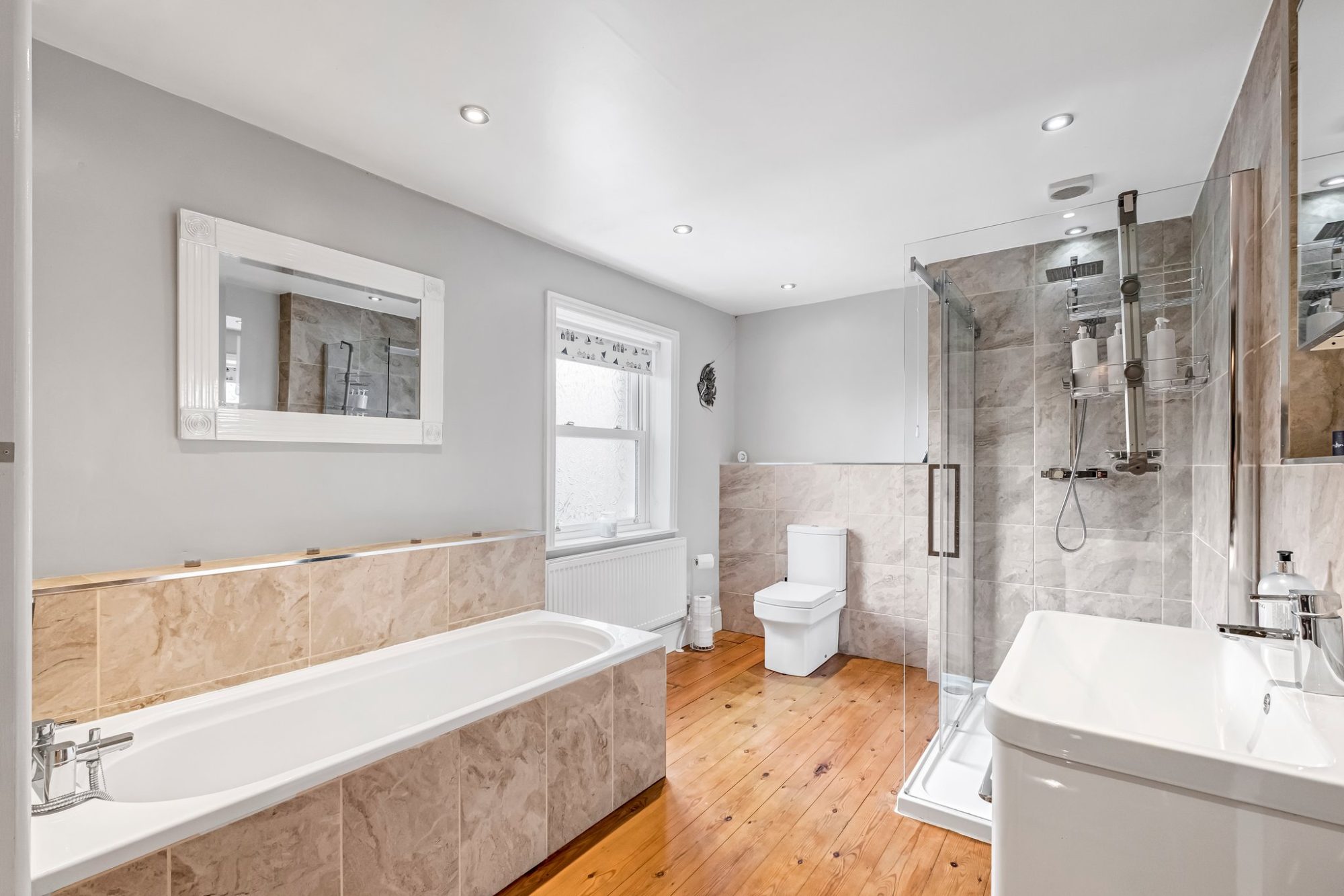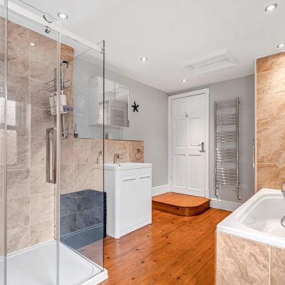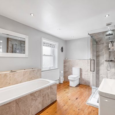 To the first floor you’ll find two generous double bedrooms. The main bedroom benefits from polished timber flooring and wonderful open views, while the second features classic sash windows. A stylish four piece bathroom with a walk in shower and timber flooring completes this level. The second floor offers a spacious attic bedroom with storage in the eaves and twin Velux windows, flooding the space with natural light.