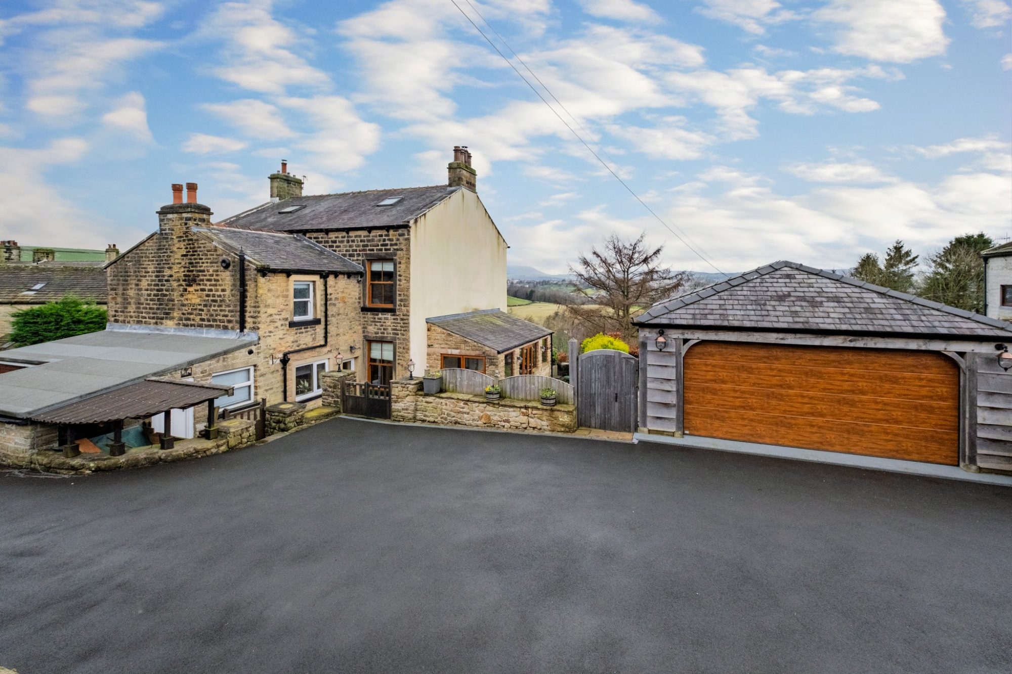 Externally, the property continues to impress. A substantial rear driveway provides ample parking for multiple vehicles and leads to a double garage. The garden can be accessed via three gated entrances, opening onto a large Yorkshire stone flagged patio with steps down to a well kept lawn. To the front, a charming stone archway and steps guide you towards the front lawn and entrance of this beautiful home. Beautifully maintained and superbly located, Pendle View combines character, modern comforts, and truly stunning surroundings. NO CHAIN INVOLVED.