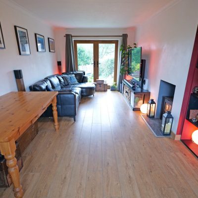 This inviting, good sized room has a multi burning stove recessed into the chimney breast and sits on a slate hearth, pvc double glazed French door leading out to the patio and garden at the rear, pvc double glazed window, a radiator and quality oak flooring.