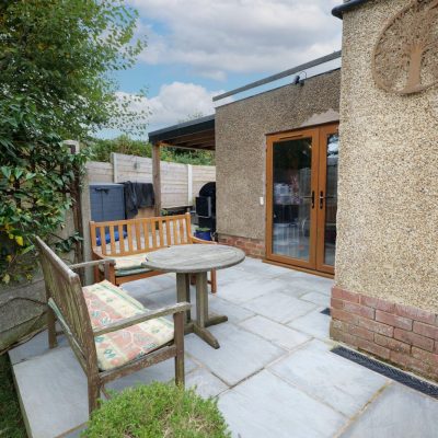 The front garden, which is screened by a mature privet hedge, is lawned, with a shrub border, and the former garage has been converted to a workshop and utility – and could serve any number of other purposes besides – with a large pvc double glazed window and pvc double glazed personal door at the front, pvc double glazed double French doors at the rear and another door giving internal access to and from the kitchen. In addition to the stone flagged patios, the charming, split level rear garden has lawned areas, a decked patio at the bottom and shrub borders.