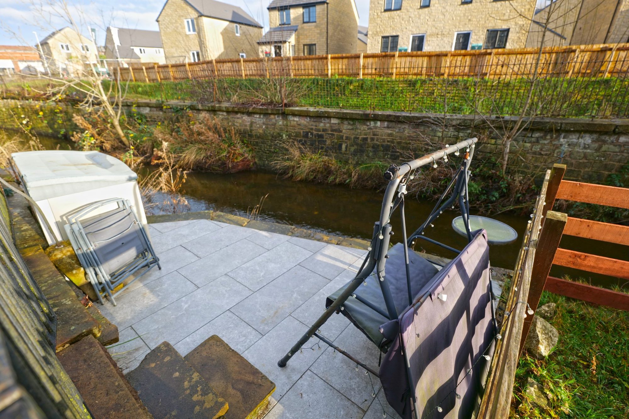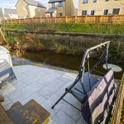 Directly in front of this lovely abode is an enclosed area which has been laid with artificial grass and a stone flagged path. Over the path is another area which has been laid with Porcelain flags providing a lovely space to sit out in the warmer months and enjoy the views of the beck.