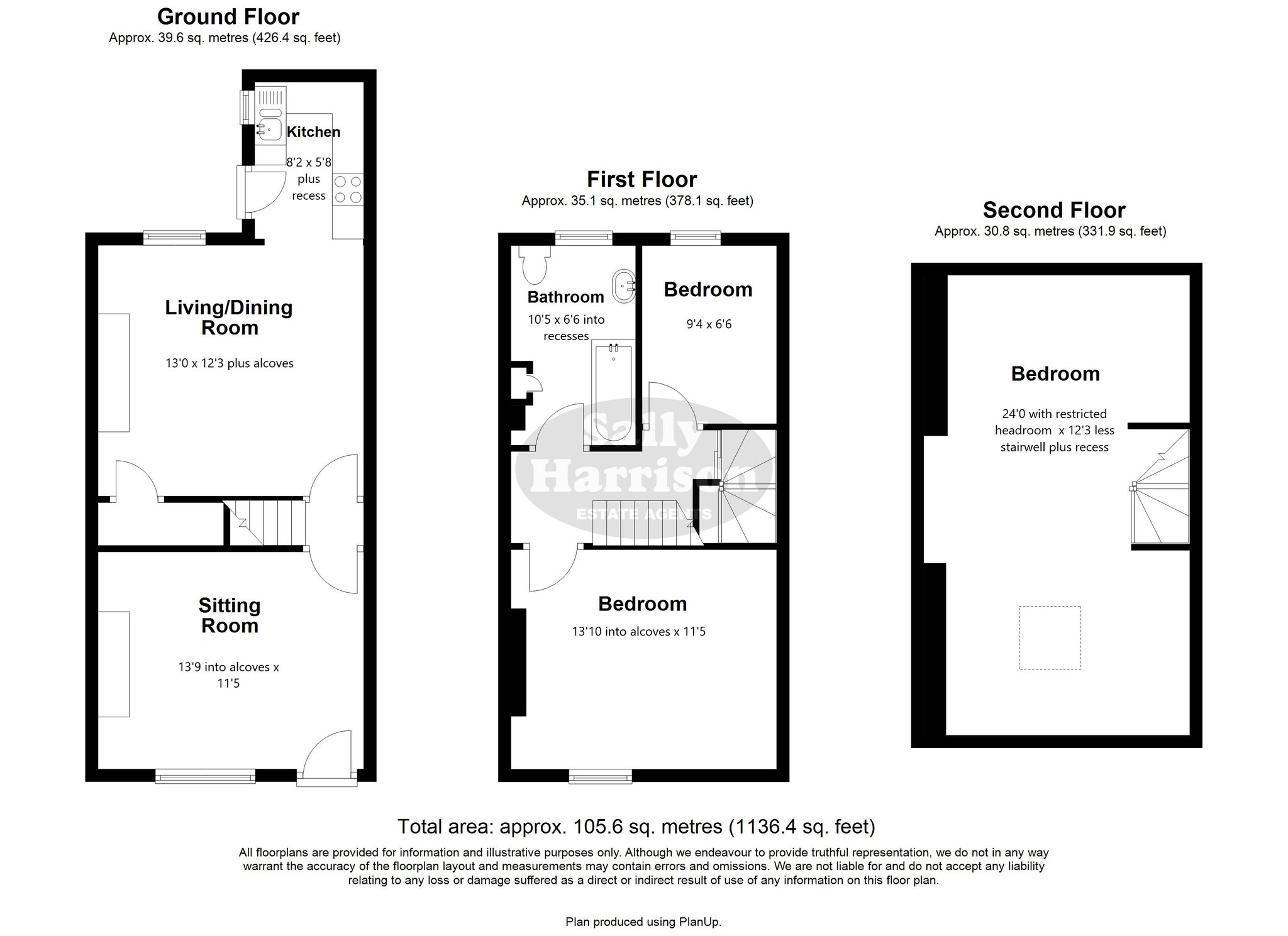 13' 9" into alcoves x 11' 5" (4.19m into alcoves x 3.48m)