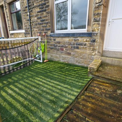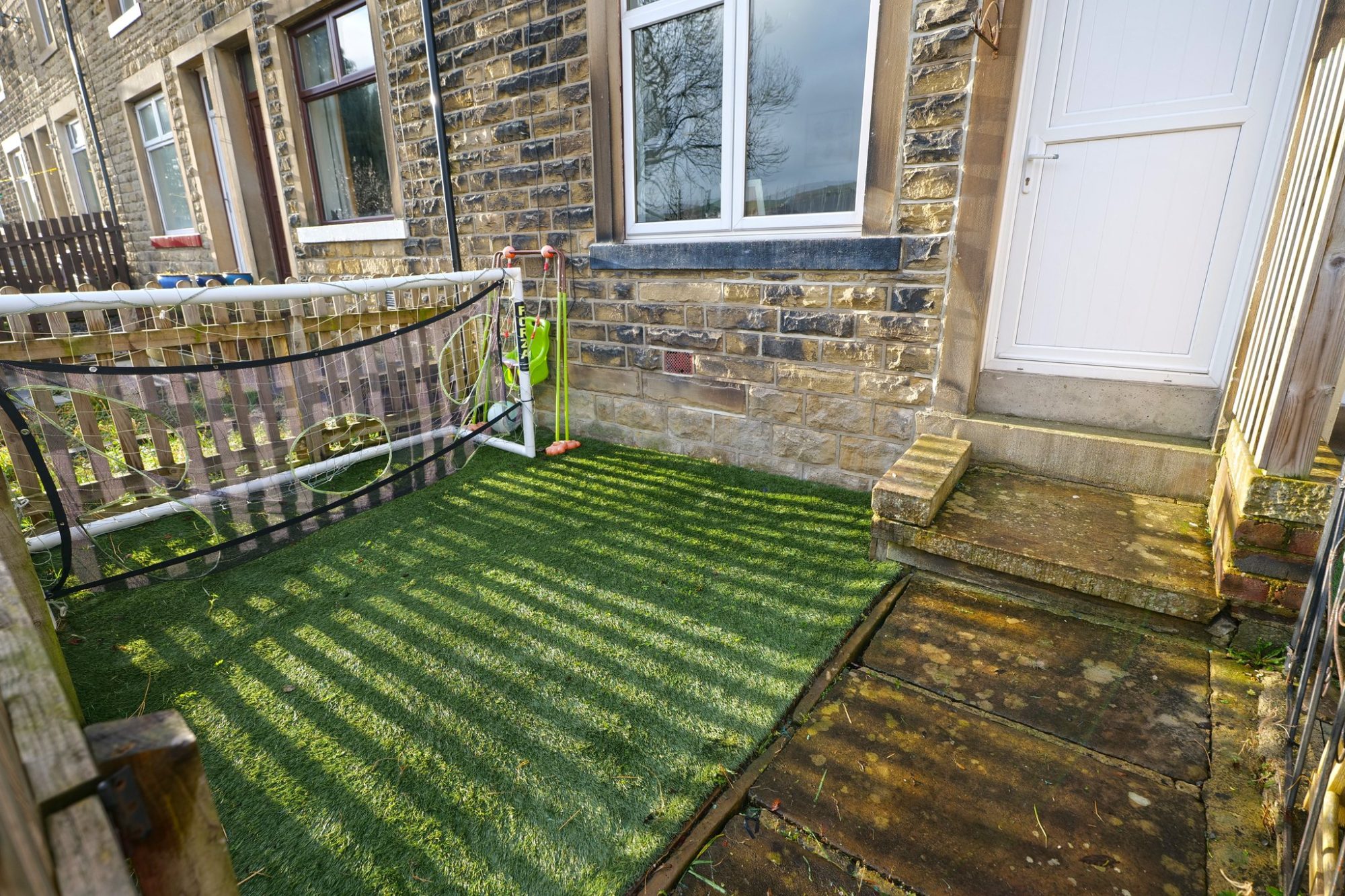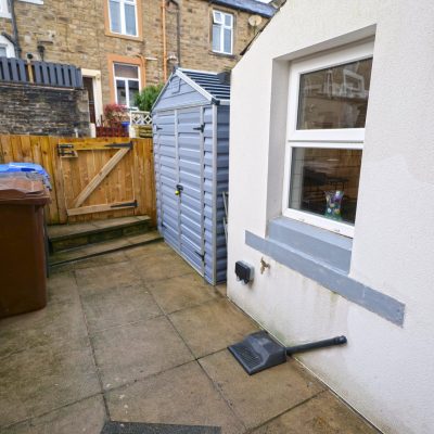 Enclosed rear yard which has been laid with patio flags, external light and electric power points and a cold water tap. There is a quality pvc shed.